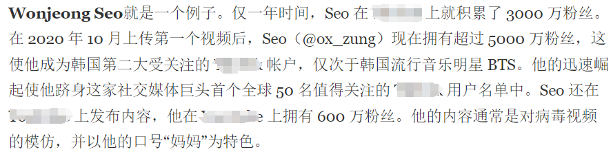 尽管韩媒莫得揭露网红的具体信息,但字据报说念实质,韩国网友很快扒出了这位网红的身份,网红真名为SeoWonJeong,账号名为ox_zung,一般被称之为MamaGuy,视频特质是会高歌一声“Mama”。